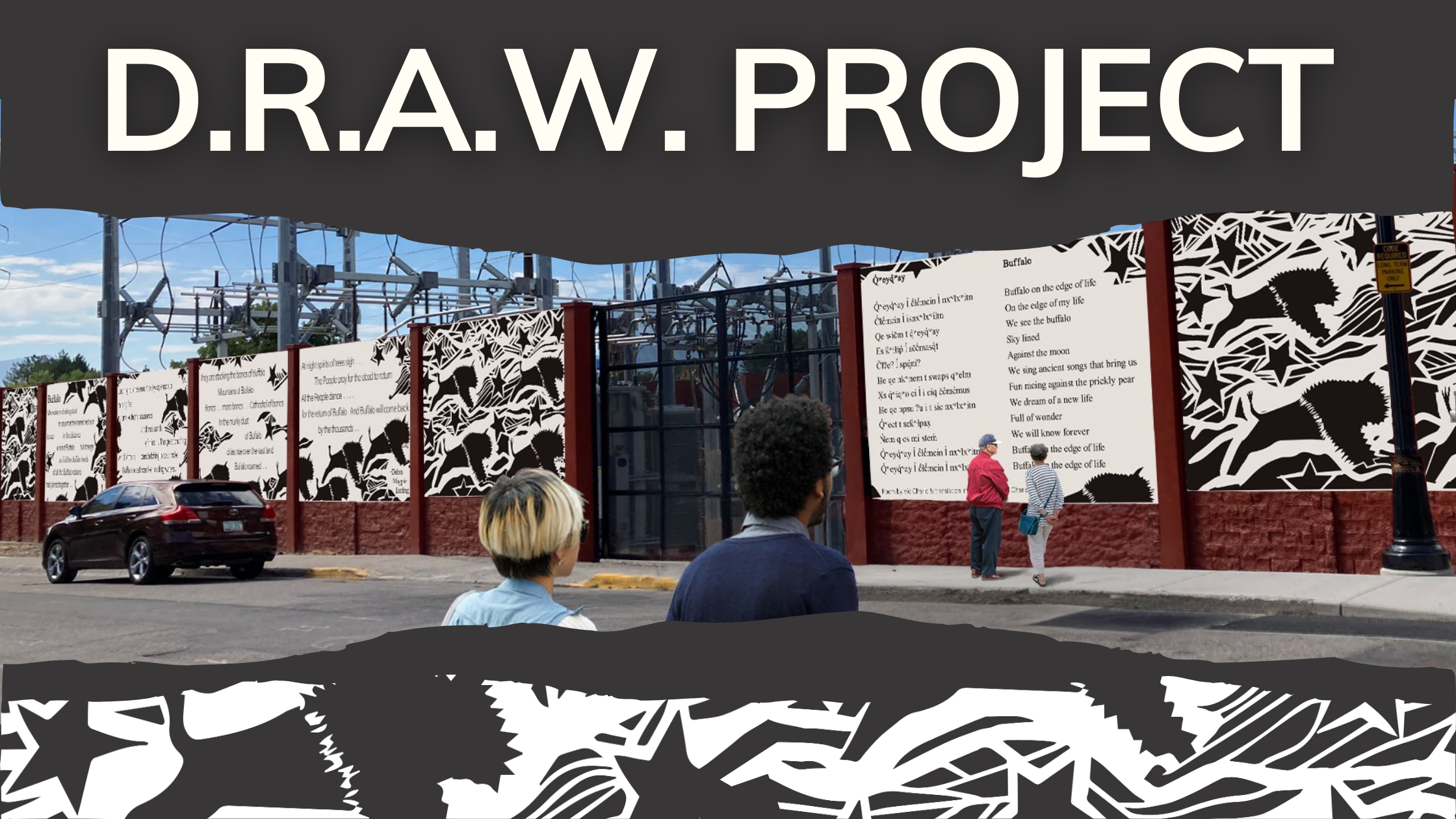 Following five years of planning and fundraising, the massive Downtown Riverside Art Walls (DRAW) Project Phase 1 has been completed and will be celebrated on Monday, Oct. 13, 2025 in conjunction with Indigenous Peoples’ Day and the 3rd annual Missoula Powwow in Caras Park. The DRAW Project Celebration will take place on Pattee Street, adjacent to the NorthWestern Energy power substation, from 11:30am-12:30pm and will include individuals who brought this project to life.