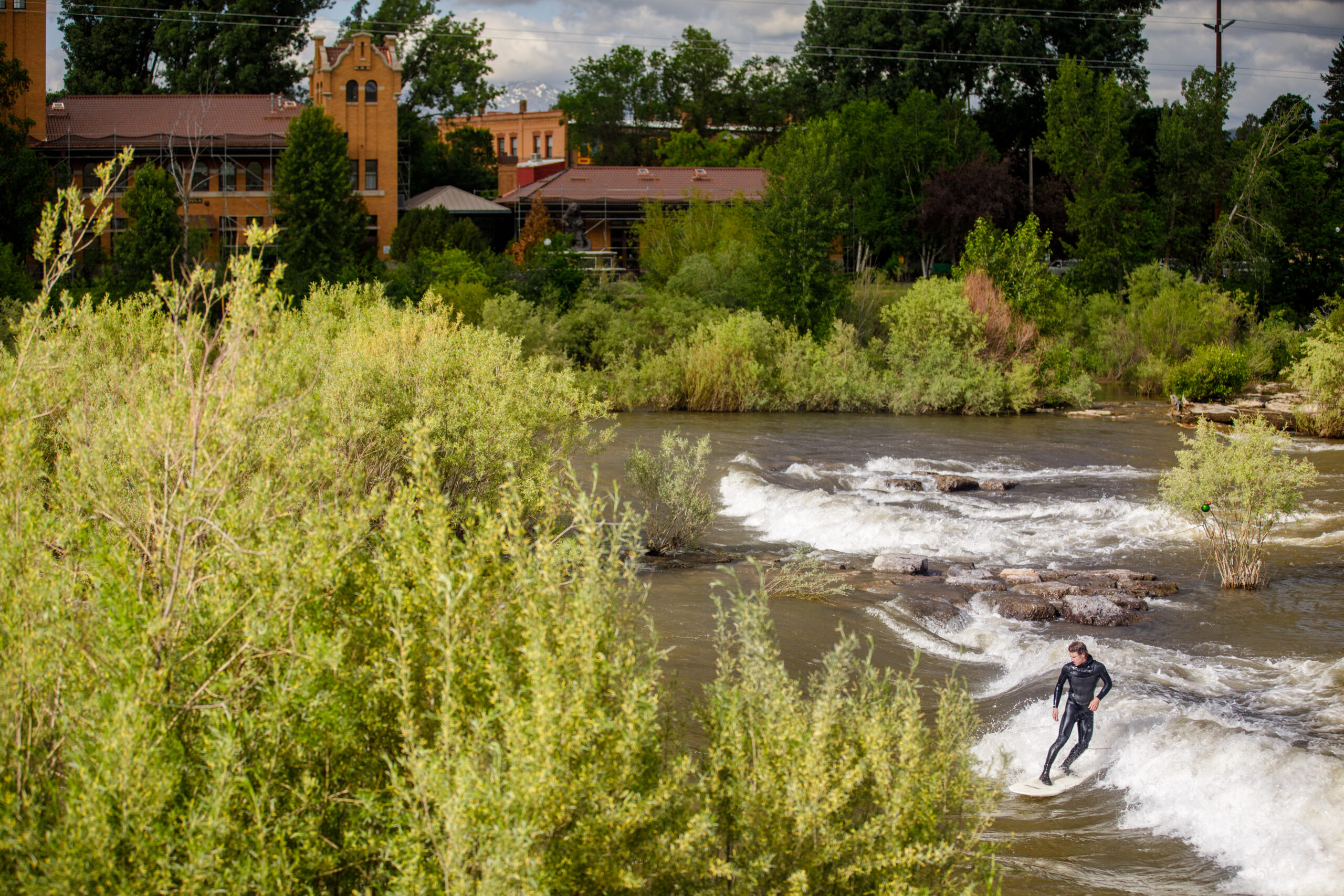 Brennan’s Wave is a man-made surfing wave alongside Caras Park on the Clark Fork River. The Wave was originally built in 2002 to commemorate Brennan Guth, an avid kayaker who passed away that same year in Chile.