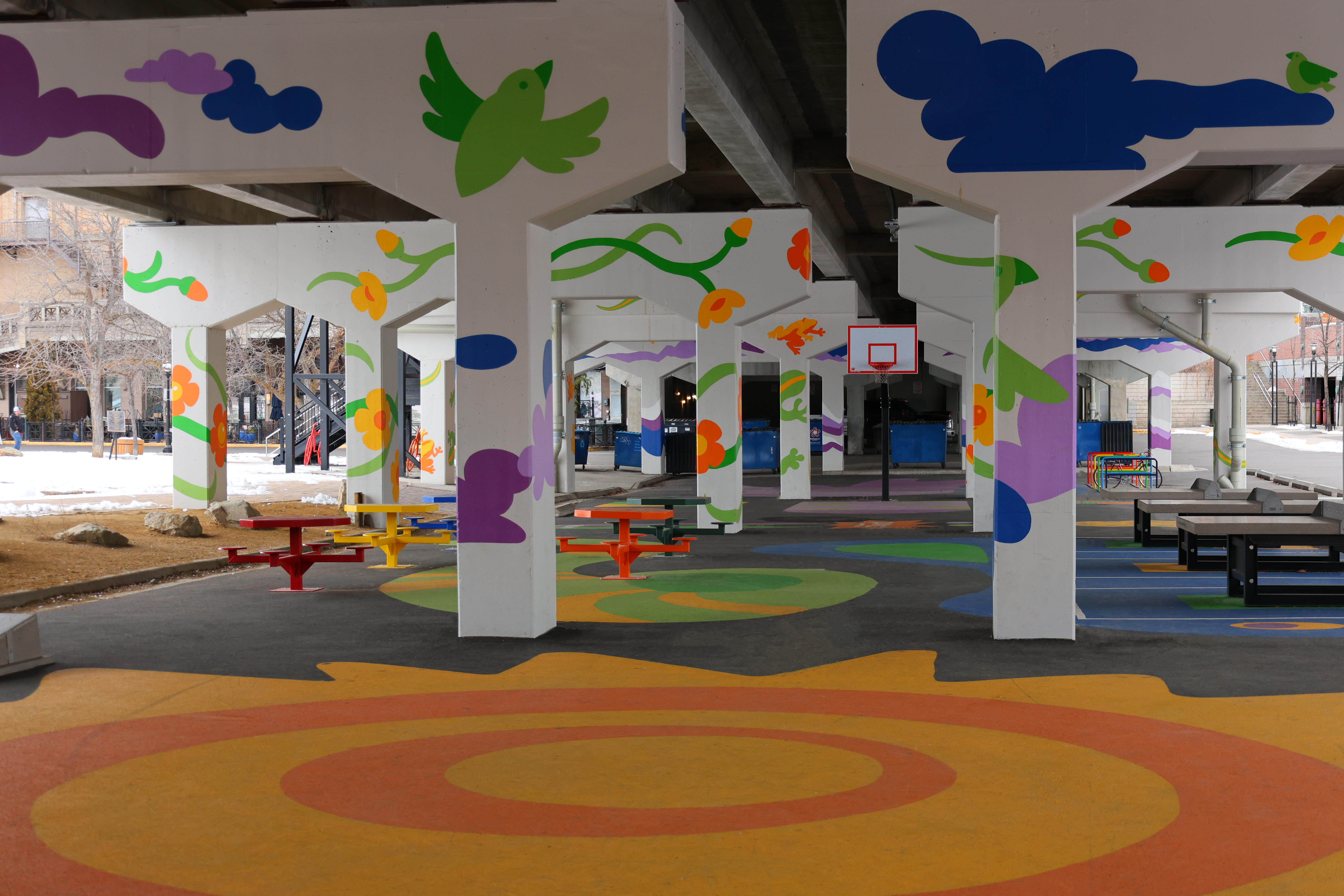 The Beartracks Underbridge Playspace, adjacent to the D.R.A.W. Project installation site, is a prime example of how stunning, meaningful art helps deter graffiti and provides a new charge of vitality in an underutilized space.
