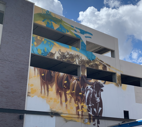 Description: The Downtown Headquarters building, shared with Trail West Bank at 218 E Main Street, received a facelift in July of 2024. Completed in one scaldingly hot week, artist Kelsey Dzintars brought Free Flow to life, exemplifying the natural beauty of Missoula and its surrounding rivers/valleys.